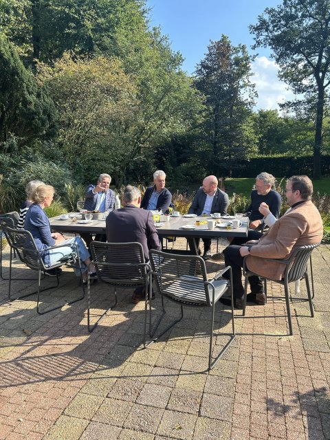 Bij bestuurslid Renate thuis stond de tafel vol koffie, thee en heerlijk zelfgebakken appelgebak. Terwijl er werd gesproken over de ontwikkelingen op de Bisselt, deelde bestuurslid én imker Erik zijn enthousiasme over de biodiversiteit in de wijk. Het was een topjaar voor zijn Bisseltse boshoning – en dat konden de collegeleden zelf proeven, want iedereen kreeg een potje honing mee naar huis.