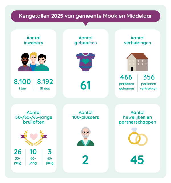 In 2025 groeide het aantal inwoners van onze gemeente van 8.100 naar 8.192. Terwijl we in 2024 juist nog een daling zagen: van 8.151 naar 8.100 inwoners.
